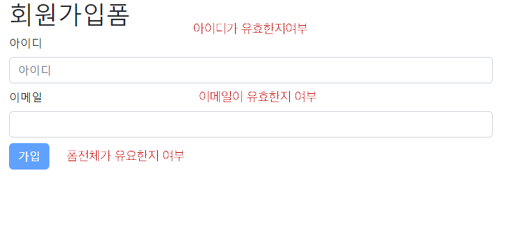 이렇게 되면 id와 email부분에 중복된 코드가 들어가니 이를 최소화하기 위해 하나의 함수를 만들어서 사용해보면