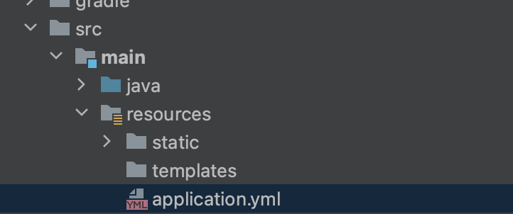 src 안에 main 안에 java가 있고 그 안에 classe들이 들어가는데 java랑 같은 위치에 resources가 있는데 여기에 application.yml을 만들어줄 것이다.