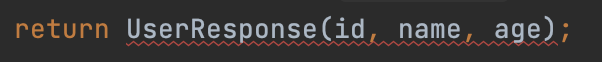 UserResponse를 반환하기 때문에 UserResponse의 id랑 name이랑 age를 반환하겠다라는 return도 작성해준다.