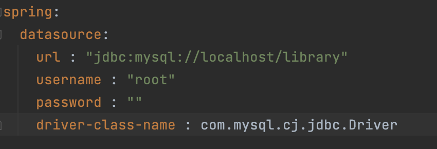 url: "jdbc:mysql://localhost/library" 👉 Spring이 연결할 데이터주소를 나타내는데 jdbc:mysql://는 -jdbc를 이용해 mysql에 접근한다, localhost는 접근하려는 mysql이 localhost(나의컴퓨터)이고 library는 데이터베이스(MySQL안에 있는 데이터베이스)를 나타낸다.