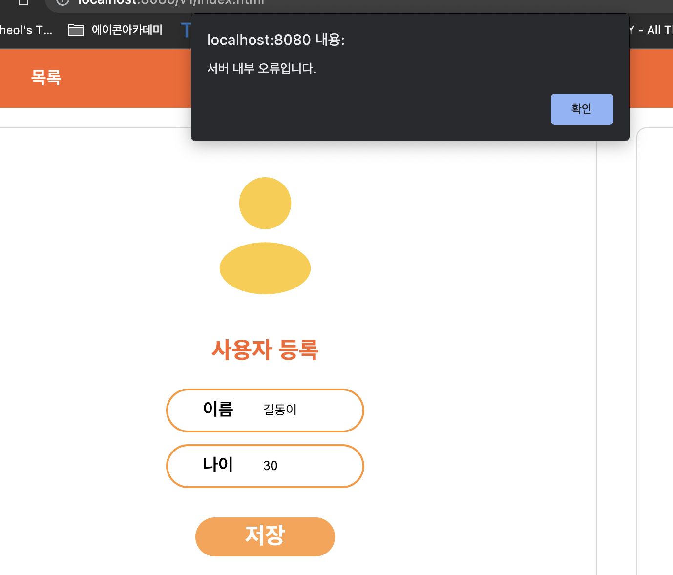 이제 web ui에서 테스트를 하러가보겠다 아무 이름이나 나이를 입력해보겠다.