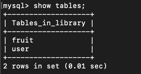 use library로 들어가주고 show tables로 만들어져있는 테이블도 만들어주고 확인 뒤에 다시 생성을 했다!