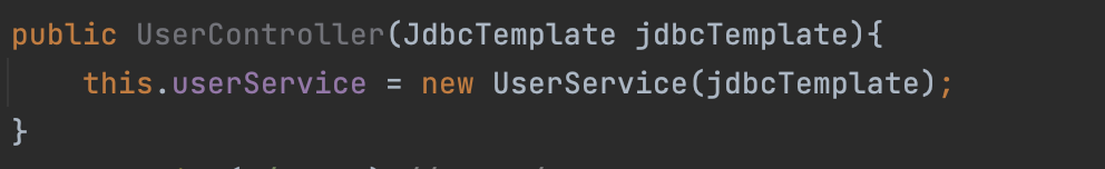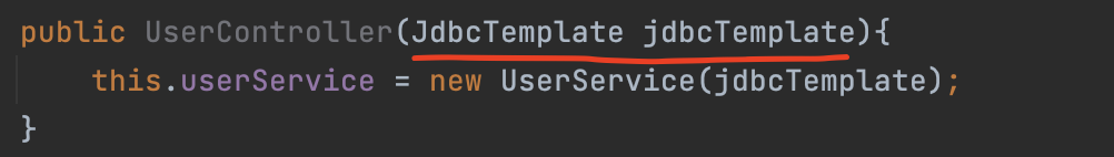 생성자를 호출하는 과정에서 UserController는 JdbcTemplate를 필요로 하고있다.