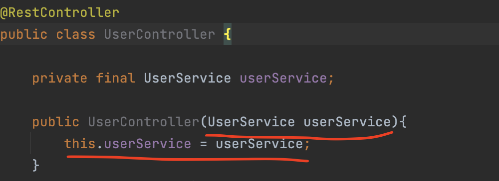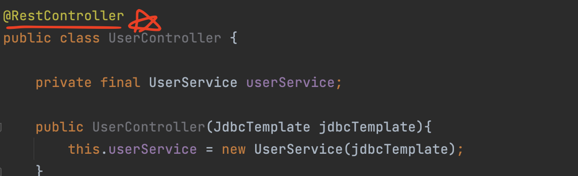 비슷하게 UserController역시 JdbcTemplate가 필요한 것이 아닌 UserService가 필요하게 된다.
