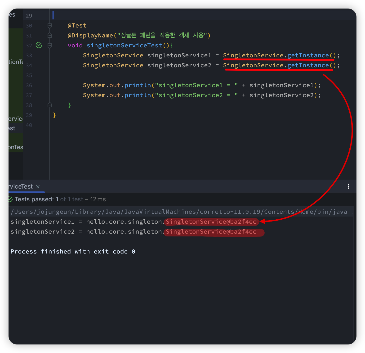 getInstance()로 호출했을 때 객체의 값이 같은 것을 확인 할 수 있다!