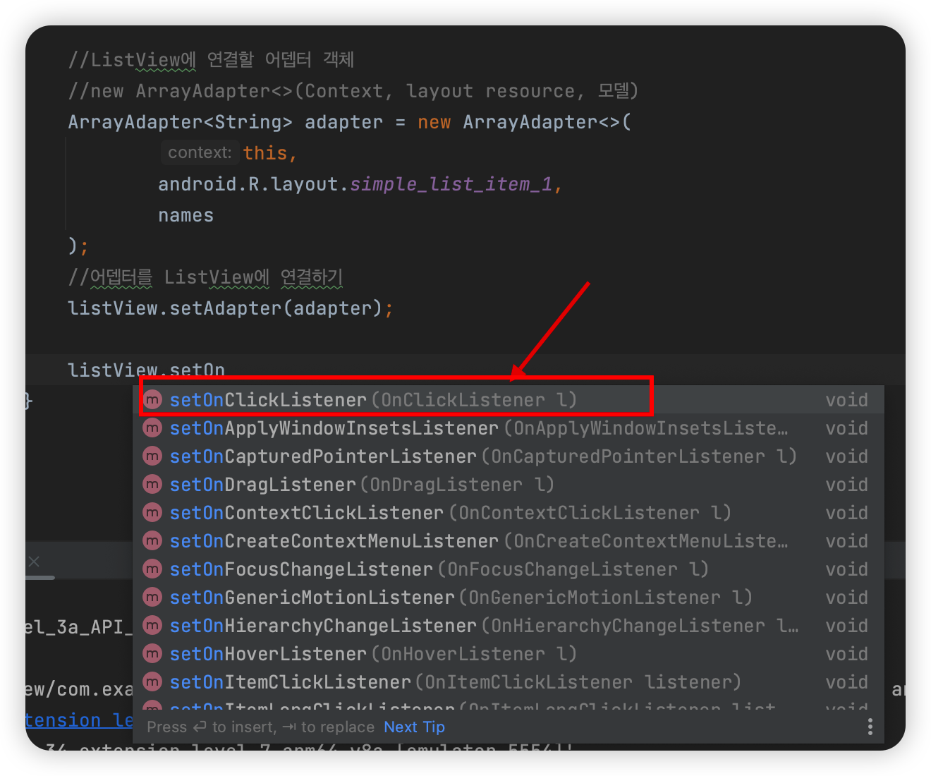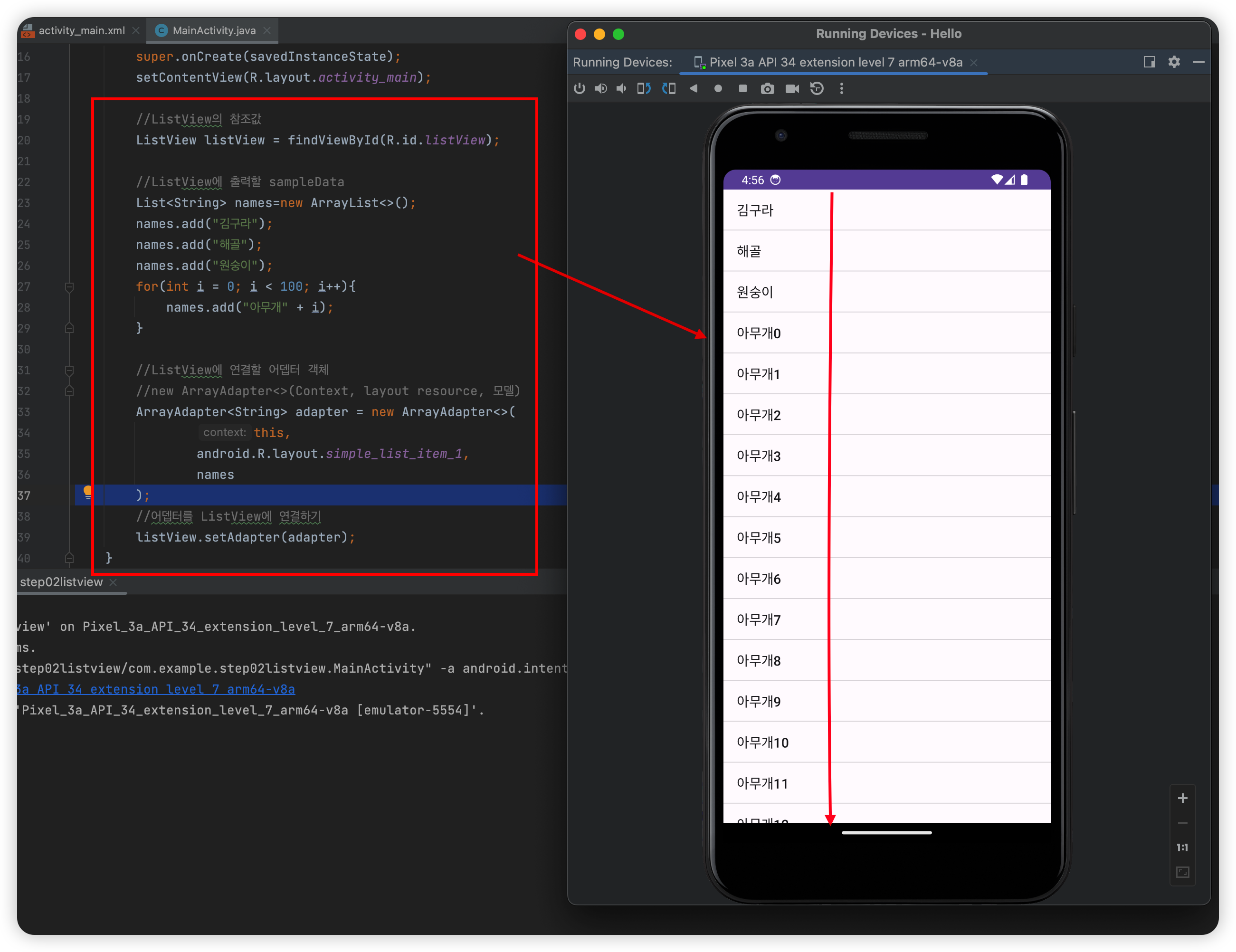 이렇게 하면 ListView를 사용할 준비는 됐다.