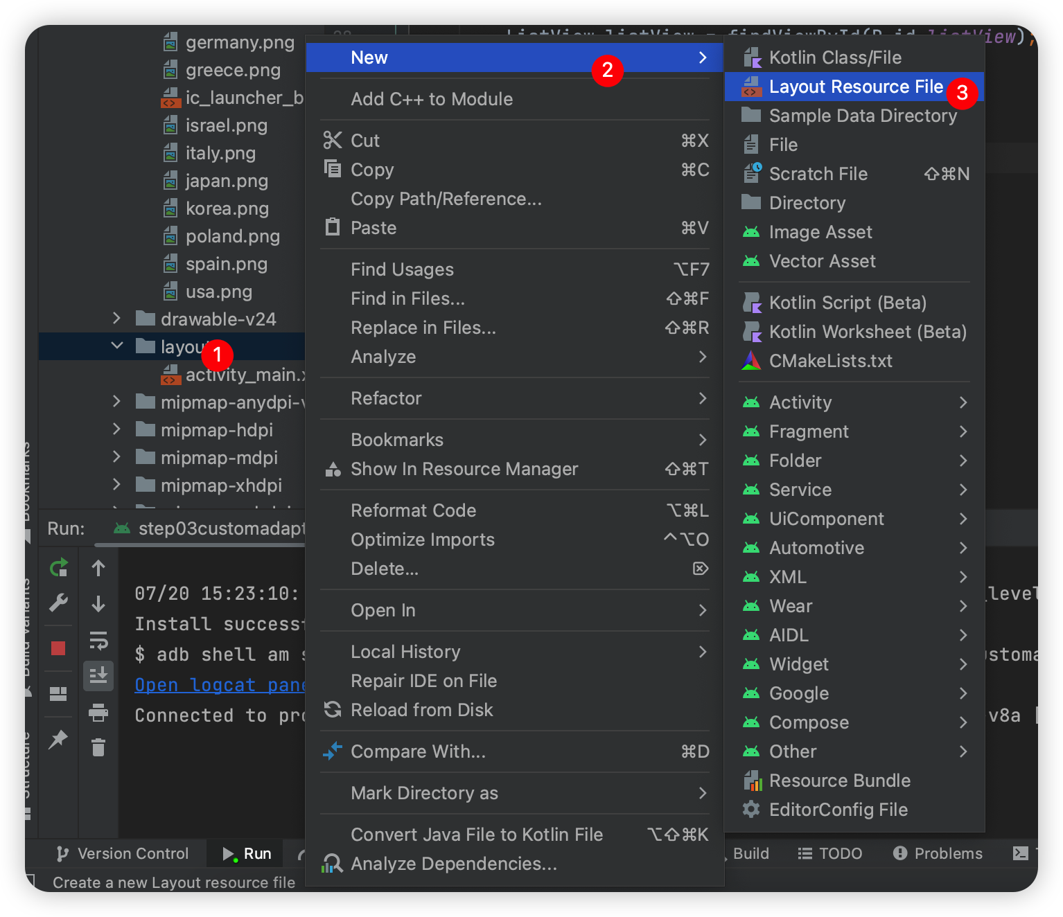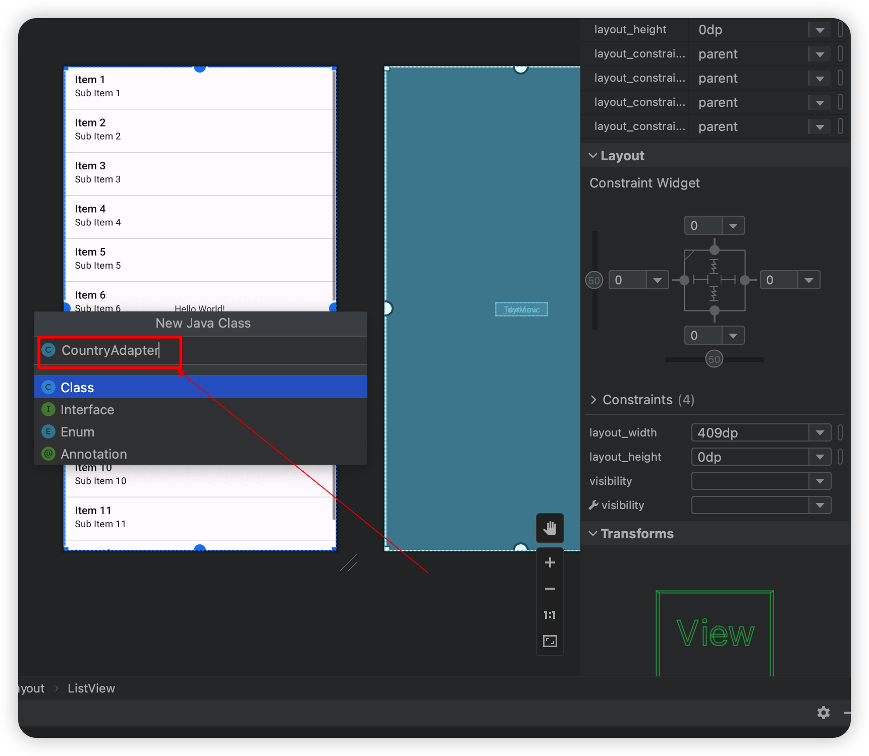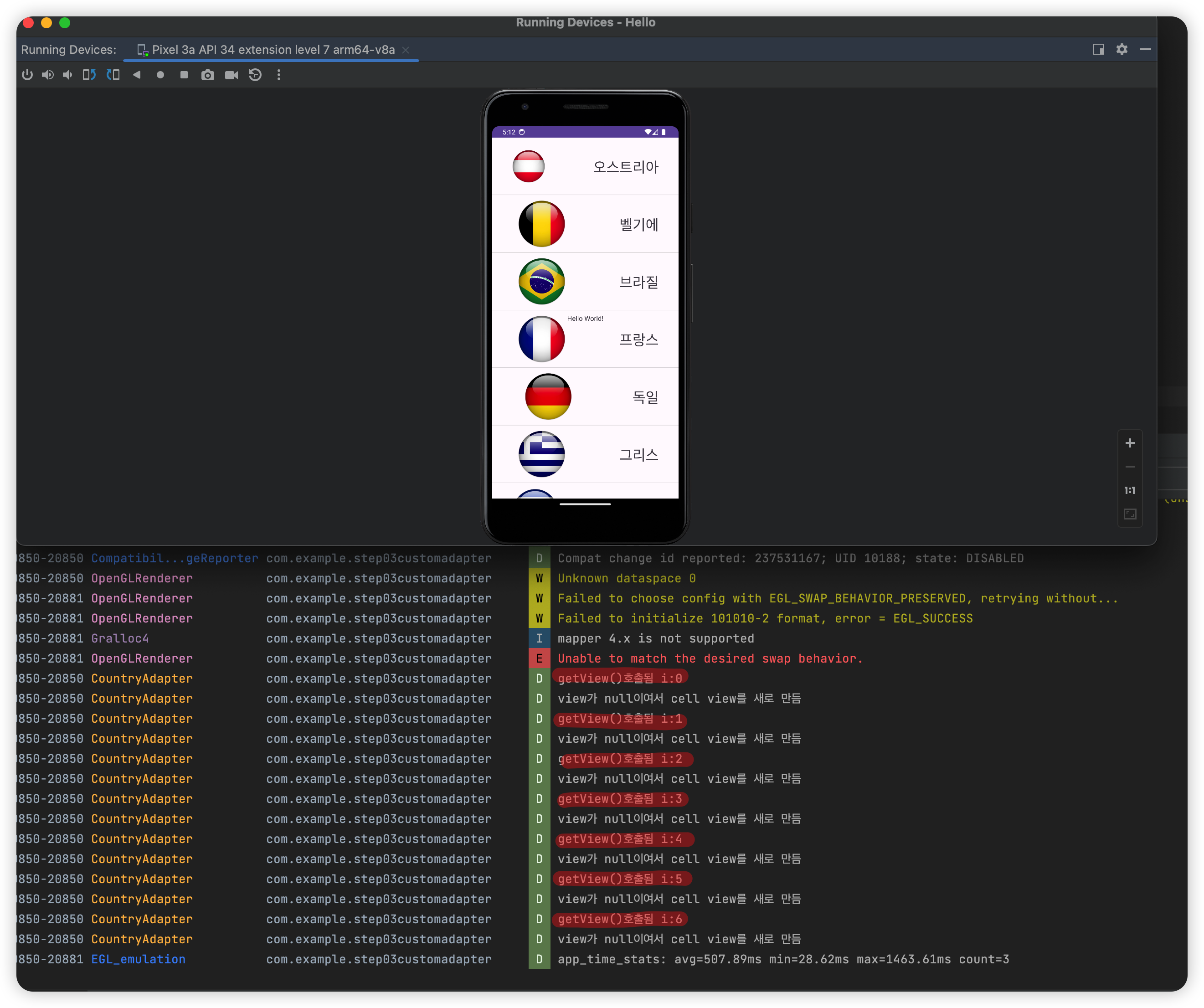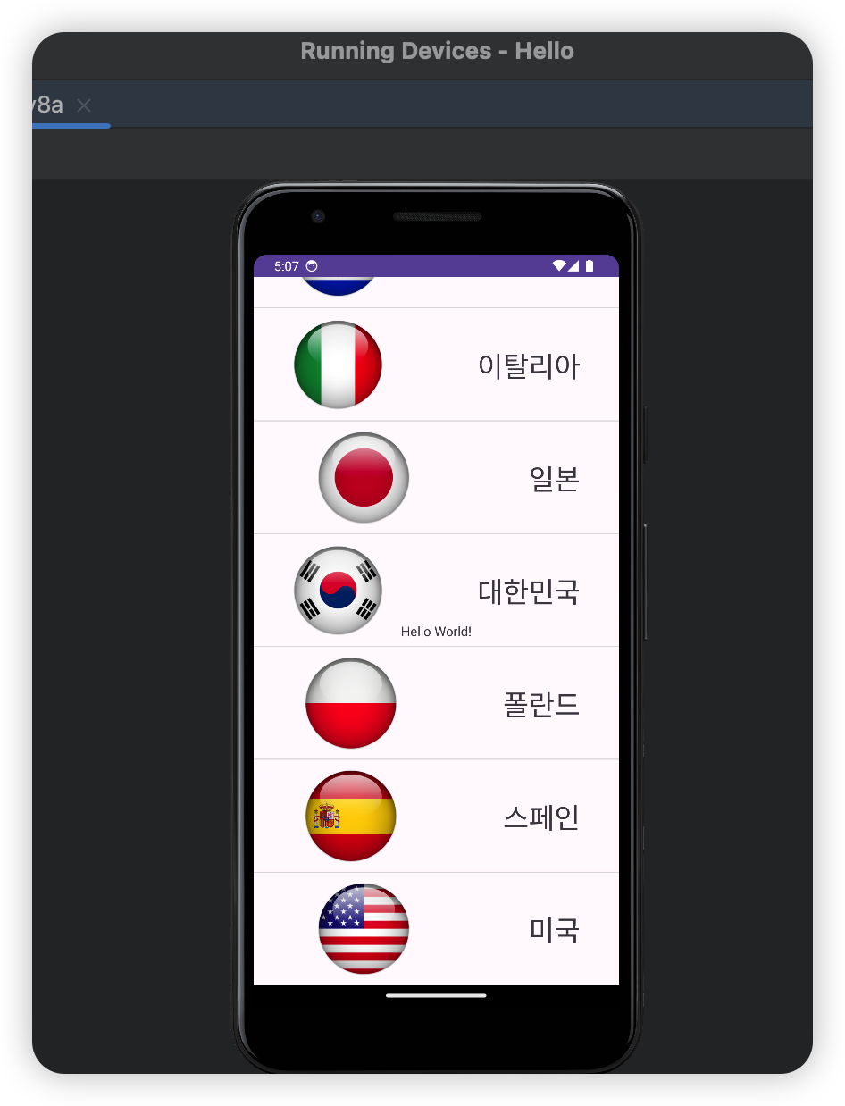 이렇게 다 만들어 준 후에 CountryAdapter의 두번째 인자인 cell의 layout resource id를 바꿔준다.