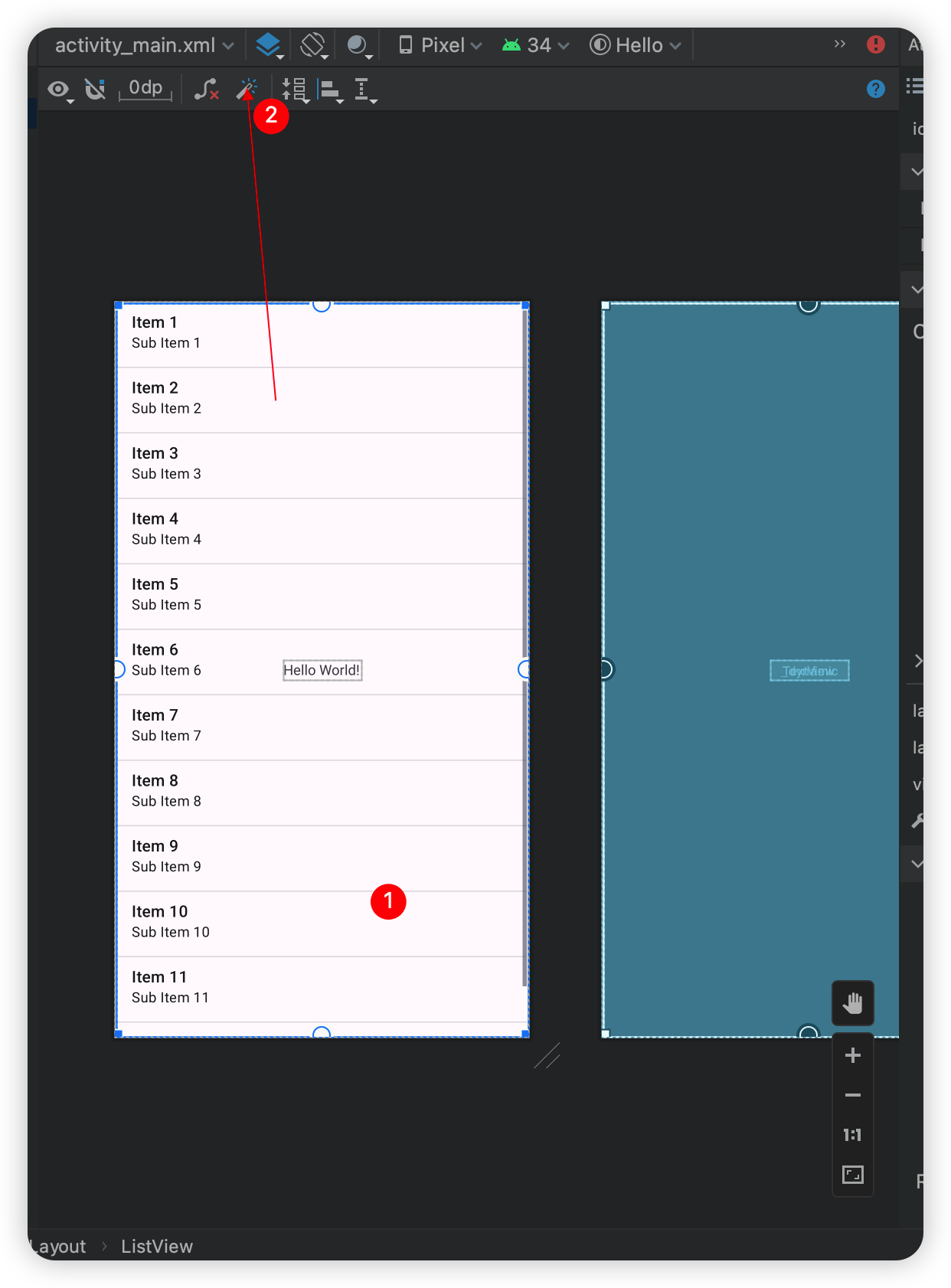 그리고 국기 오른쪽에 TextView를 배치해보겠다.