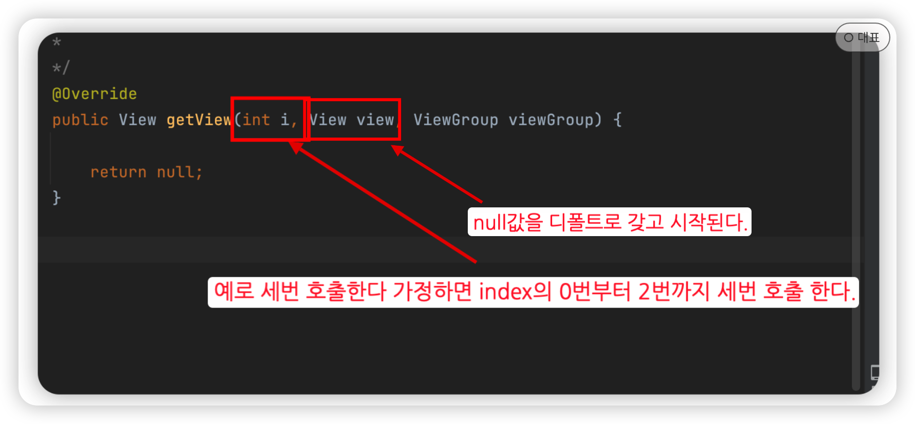 // i 번째 인덱스에 해당하는 View 를 리턴해 준다.