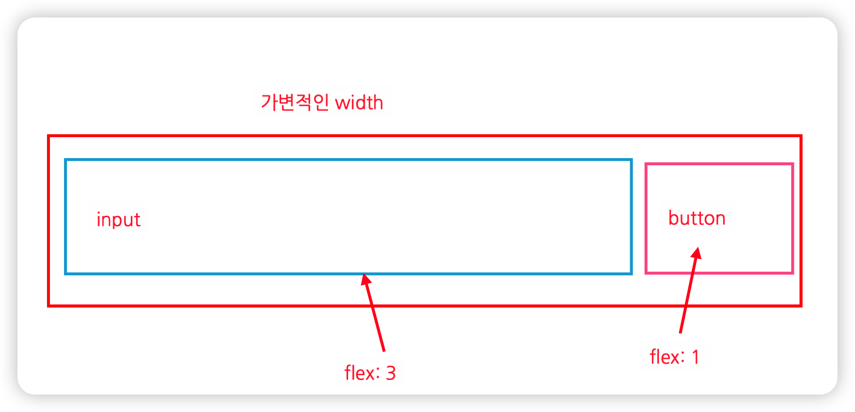 만약 가변길이의 input요소 3대 button 1의 비율을 갖는 flex를 갖고 싶다면 아래와 같이 작성하면된다.
