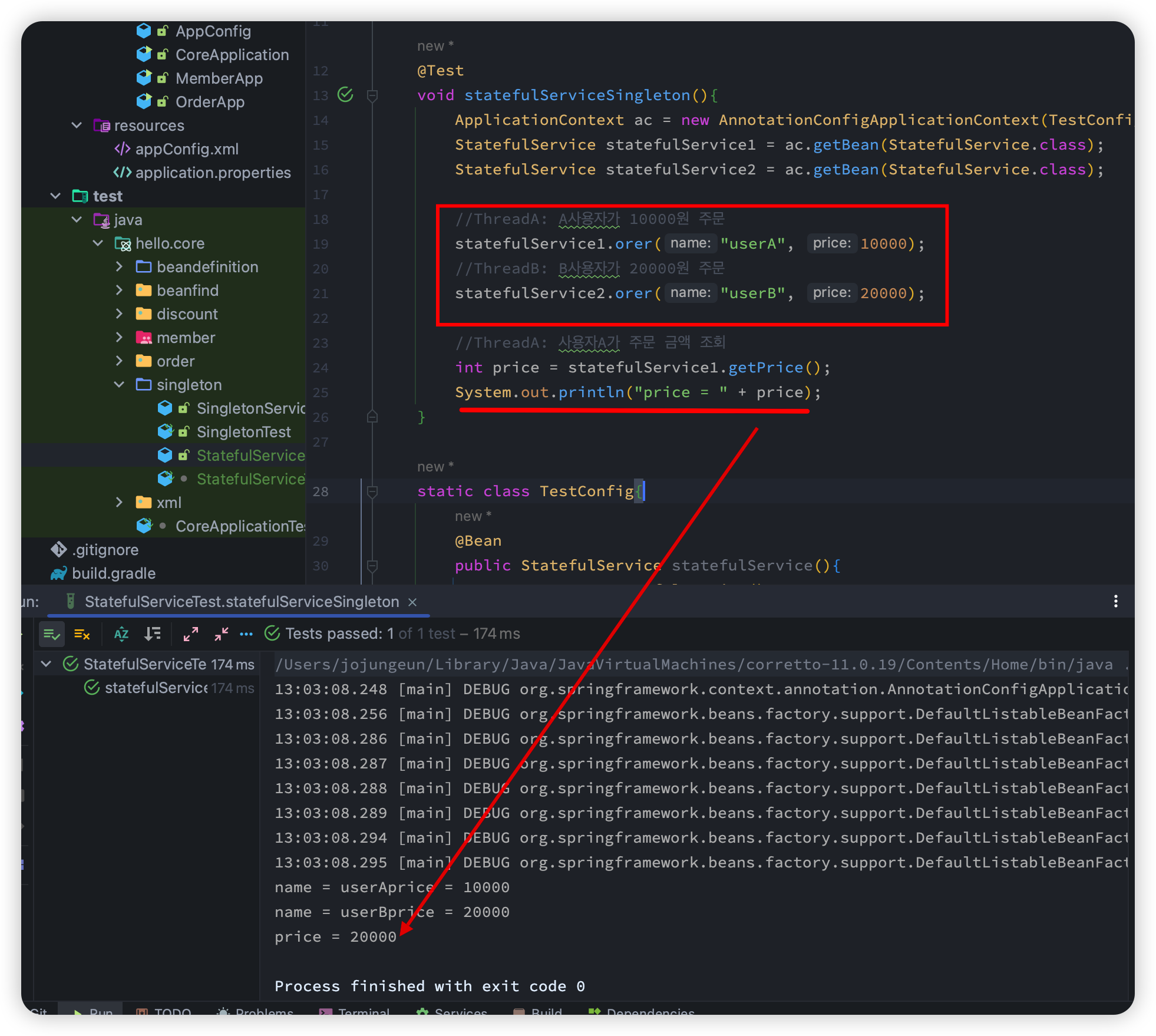 StatefulService는 싱글톤으로써 price필드가 공유되는 필드인데 특정 클라이언트가 공유되는 필드가 변형이 되었다.