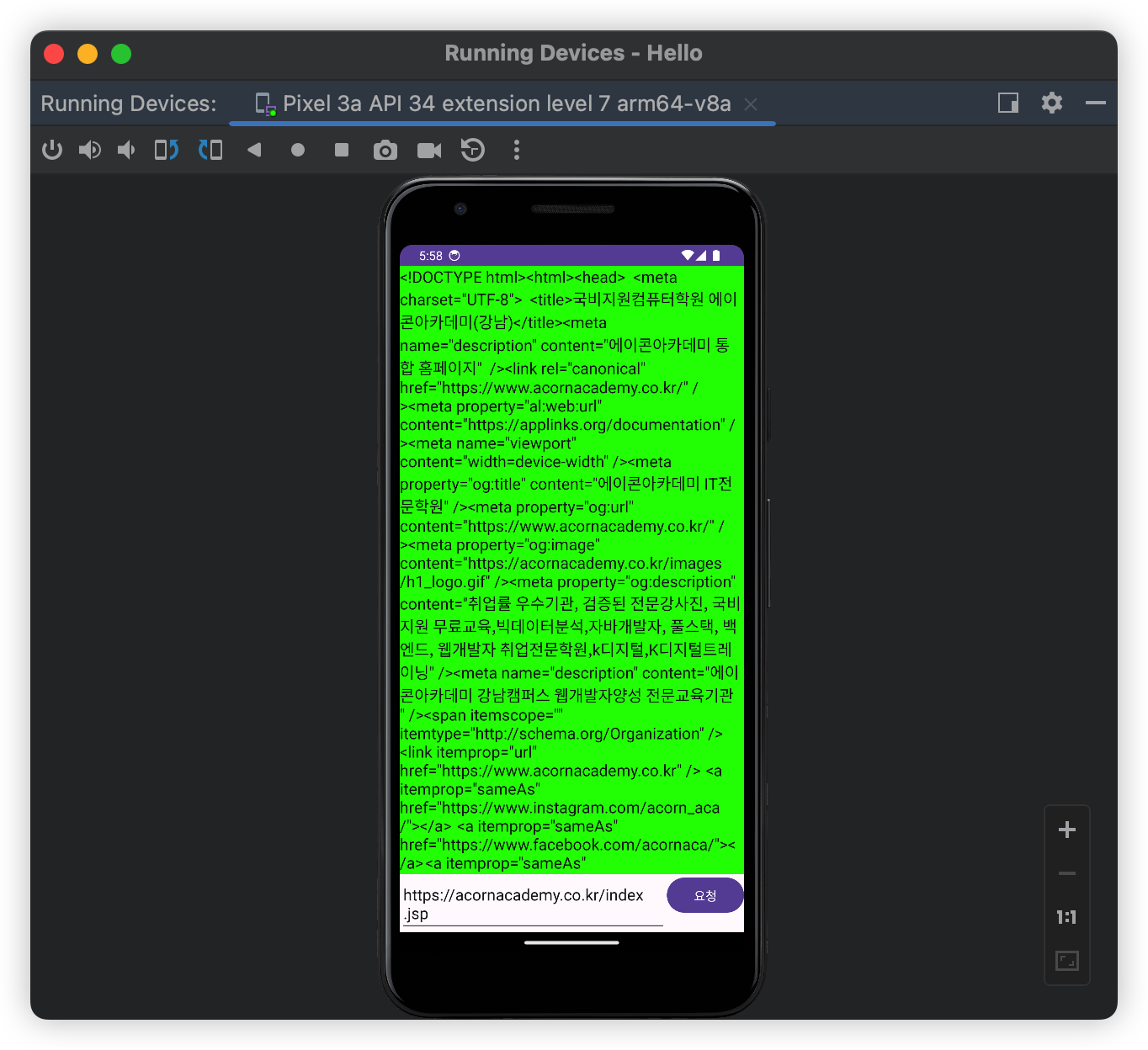 위에 디자인에서 무엇을 해보려고 하면 http://아무주소나 읽어와서 위에 화면에 출력하도록 하는 실습을 해보겠다.
