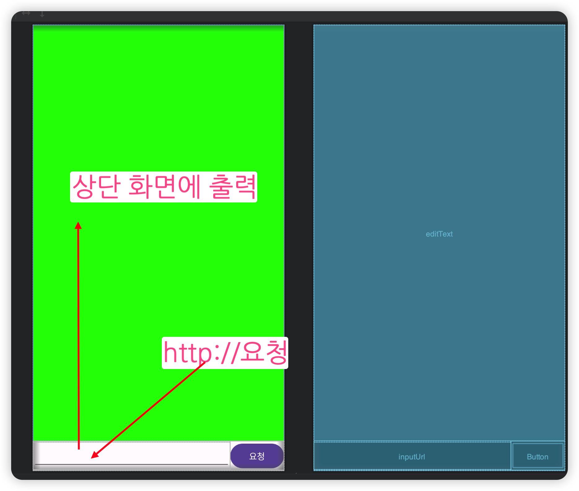 android:text="요청"