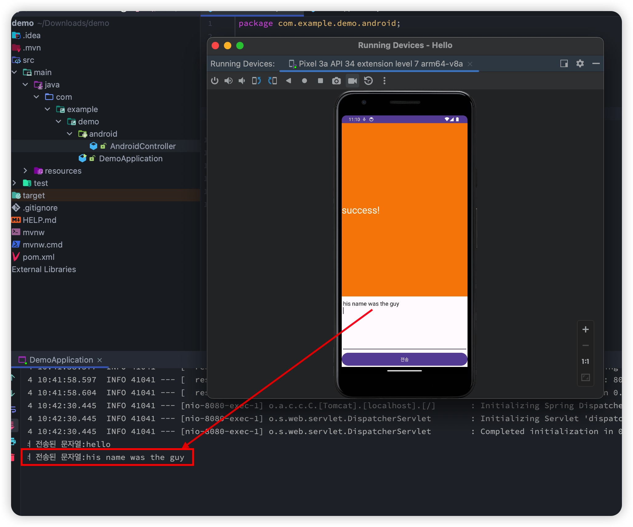 System.out.println("안드로이드에서 전송된 문자열 : " + msg);