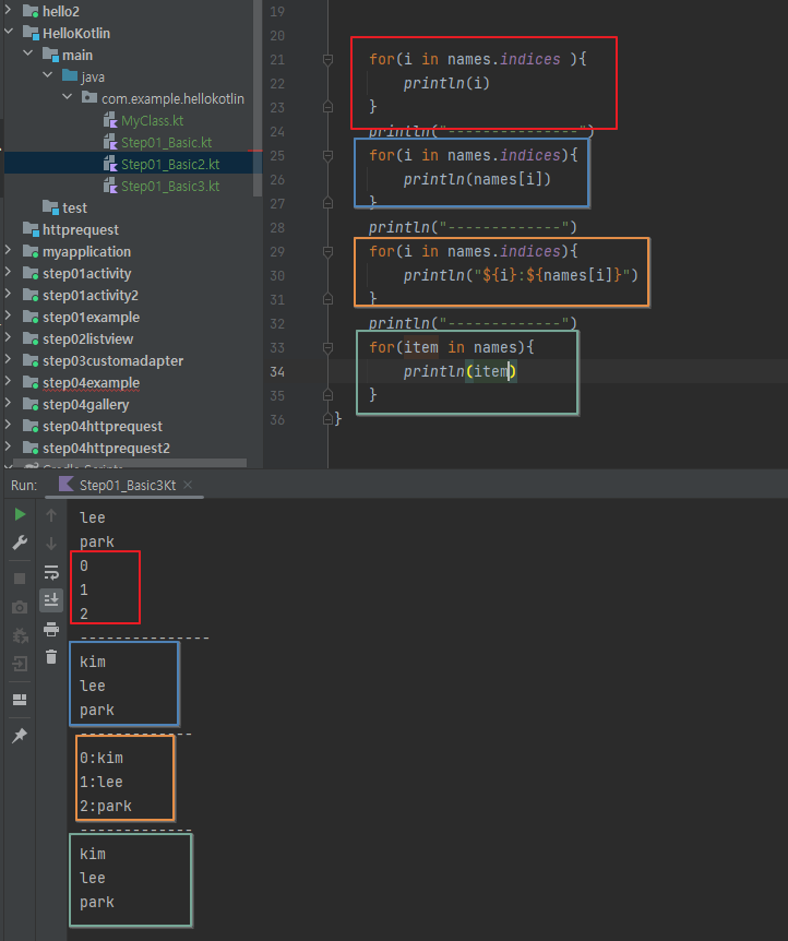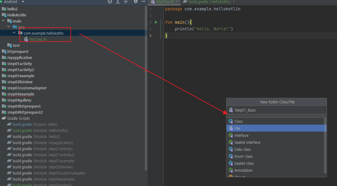다음 새로운 File을 만들어서 Kotlin에서의 배열고 반복문에 대해 배워보겠다.
