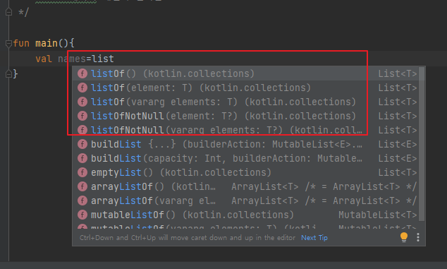 위에 캡쳐본을 자세히 보면 listOf( )안에 있는 데이터 타입이 추론 가능하기 때문에 이역시도 listOf의 Generic도 생략이 가능한 것을 알수가 있다.