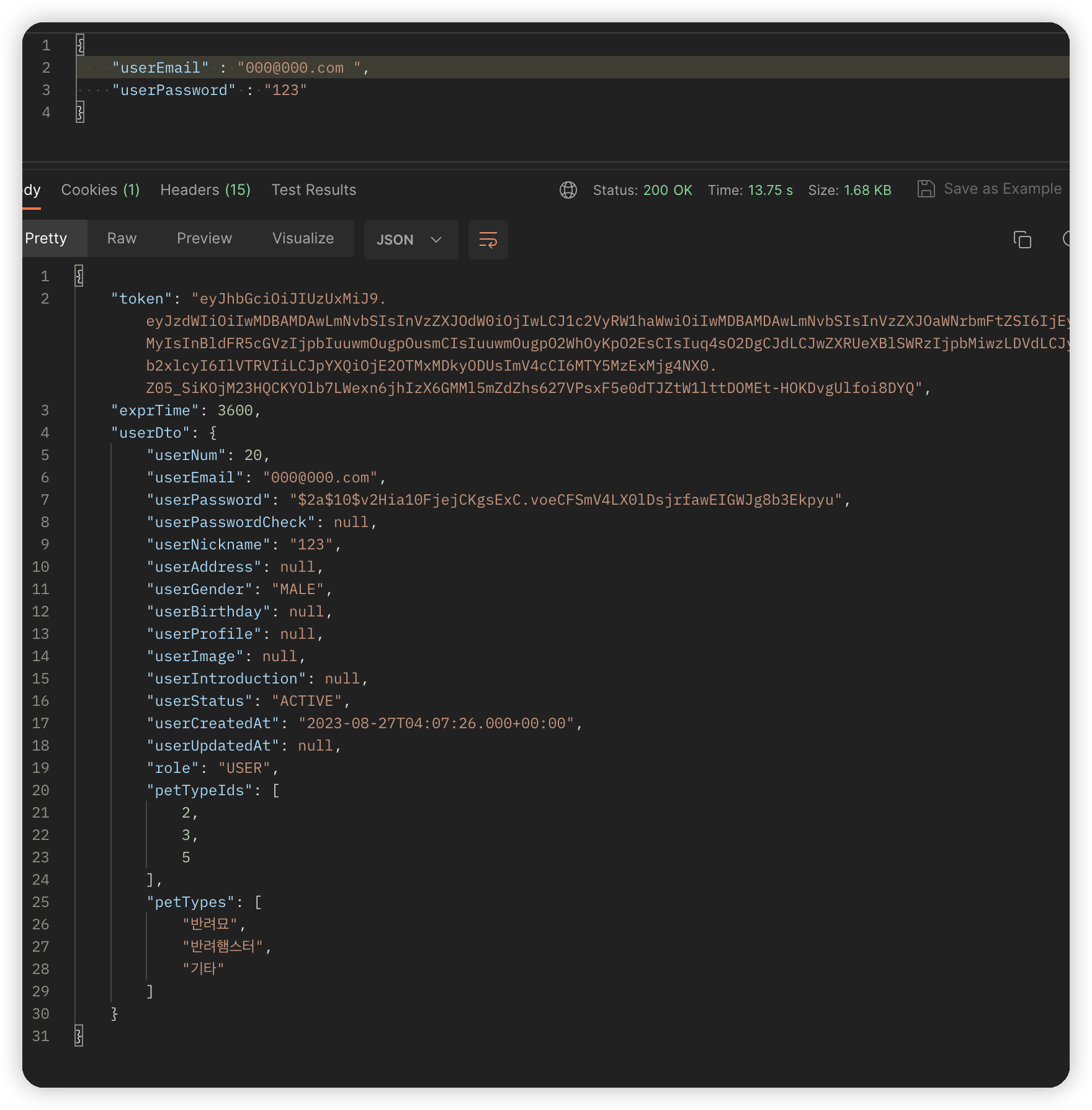 서버를 재시작하고 POSTMAN으로 테스트를 해보았다.