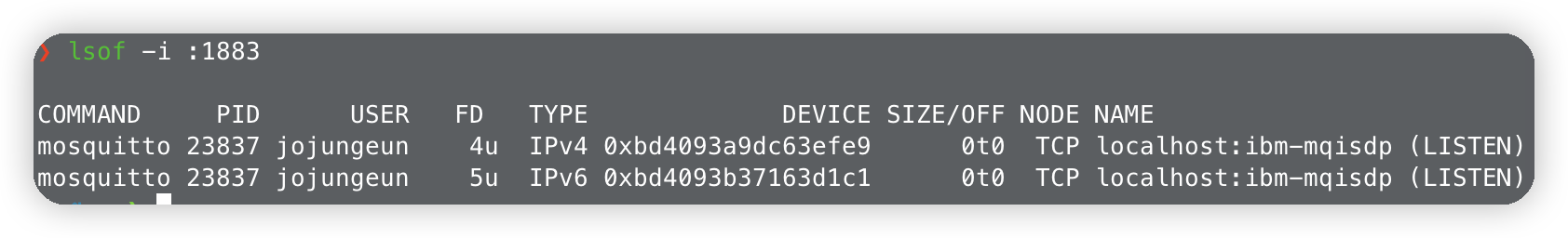 이미 1883port를 사용중이라 하니 1883포트를 사용중인 프로세스를 먼저 찾아보겠다.