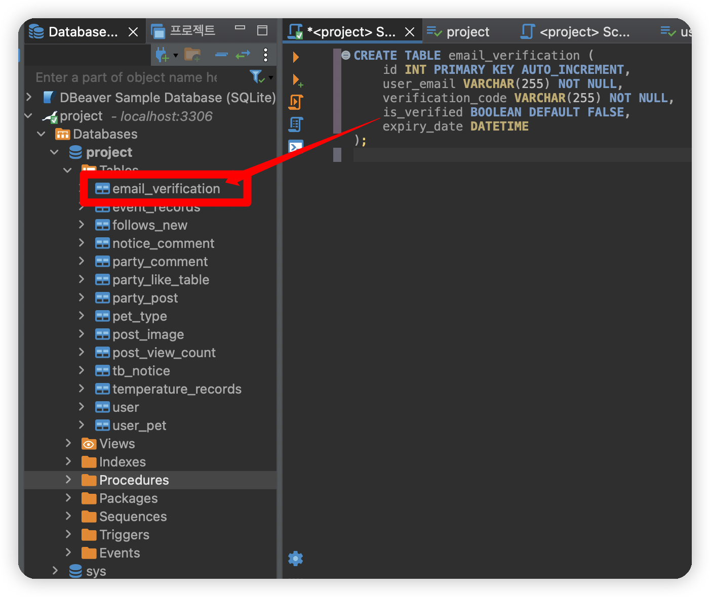이렇게 의존성과 기본적인 설정을 한 후 데이터베이스에 이를 담당할 테이블을 생성합니다.