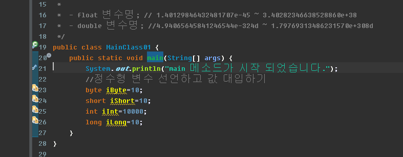 - 정수, 실수, bloolean type 변수 만들고 값 대입하는 방법