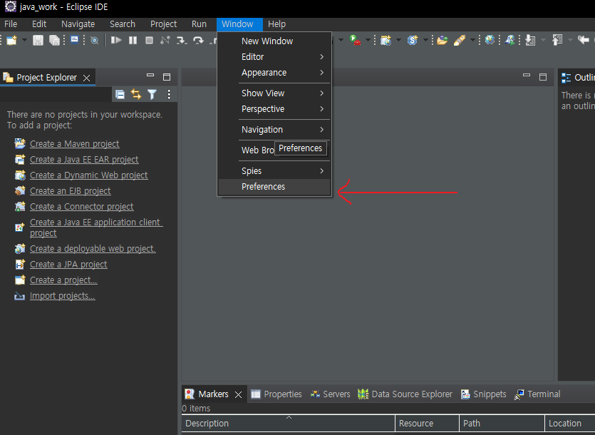 이 prferences에서의 설정은 java_work폴더에만 적용이 된다.
