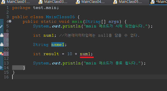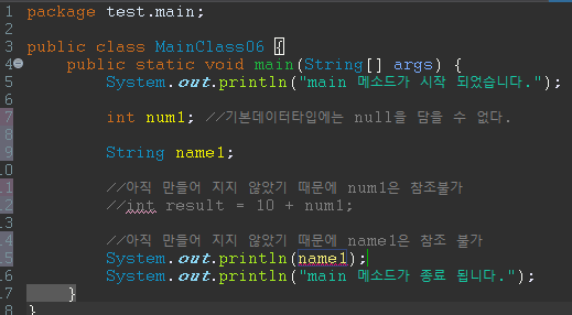 변수가 만들어지려면 어떠한 데이터 값이라도 들어가 있어야지 변수가 만들어진다.