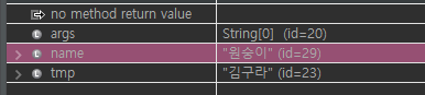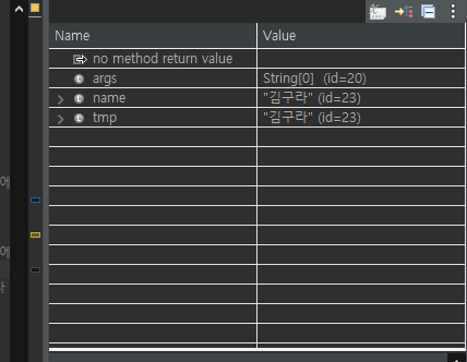 String tmp = name; //tmp변수에 name의 변수값임 "김구라"라는 데이터 값이 들어감