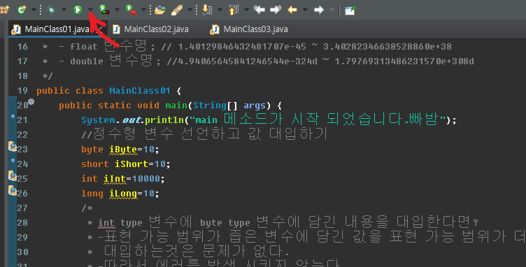 //run 했을때 실행의 흐름이 시작되는 특별한 메서드