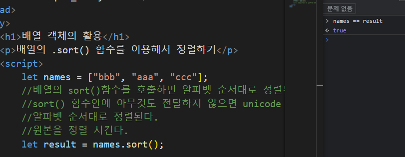이 sort()함수는 리턴하는 값을 원본배열의 참조값은 바꿔서 return해준다.