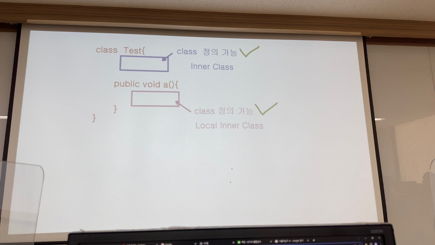 클래스안에 클래스라 하여 내부 클래스 혹은 inner class라고도 한다.